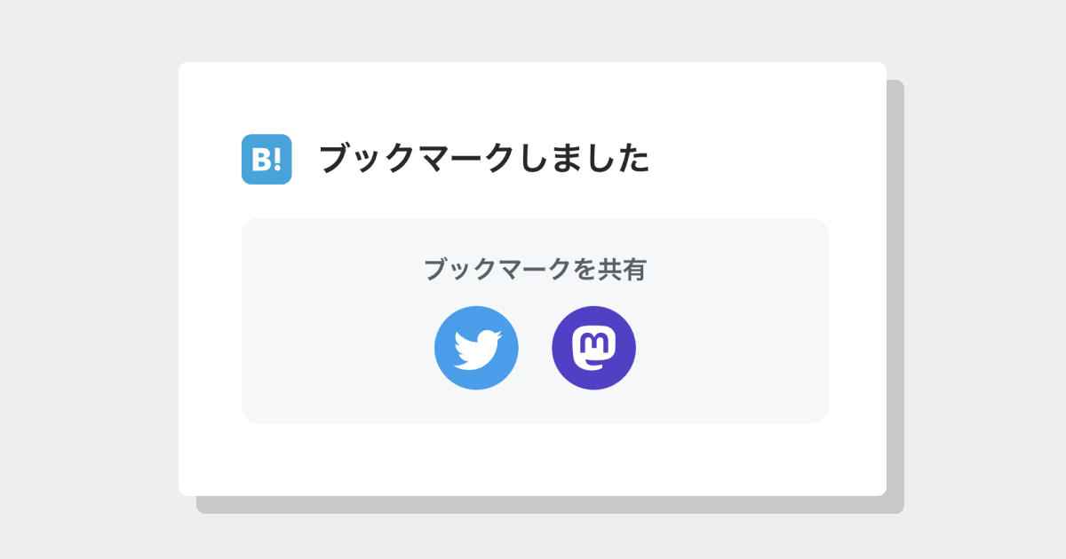 ブックマーク後にTwitter・Mastodon共有メニューが表示されます